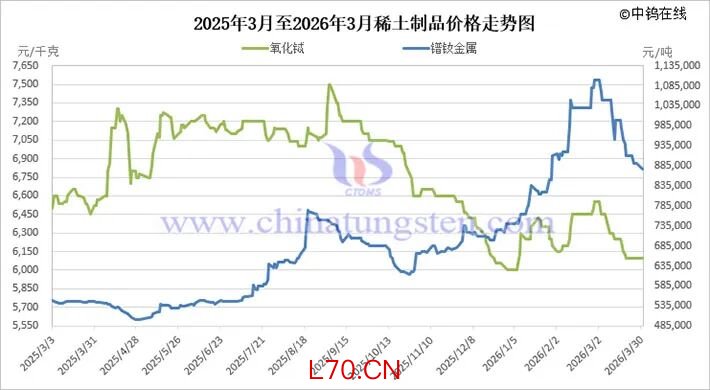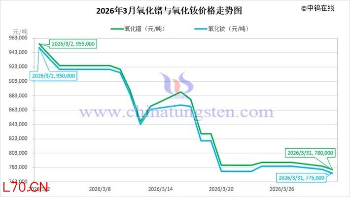 2026年3月氧化镨钕与镨钕金属价格走势图