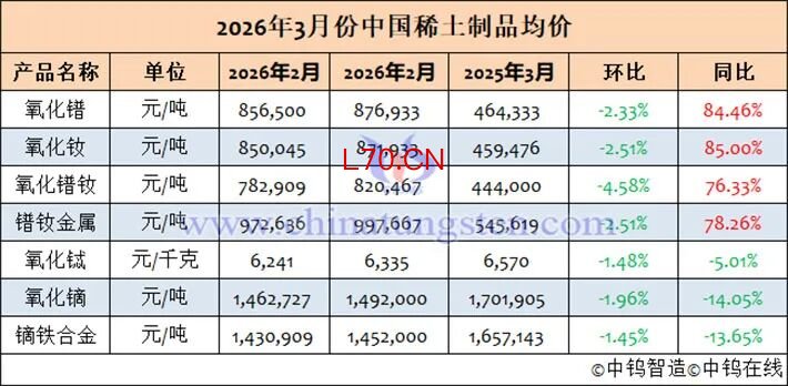 ]article_adlist-->二、2026年3月稀土制品均价