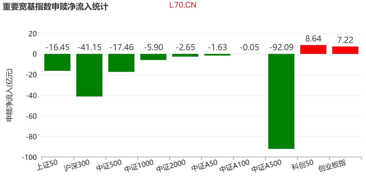 细分来看,主要宽基指数整体资金申赎统计显示,本周科创50、创业板指实现净流入,而中证A500净流出92.09亿元。
