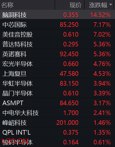 港股半导体板块大涨,中芯国际涨超7%