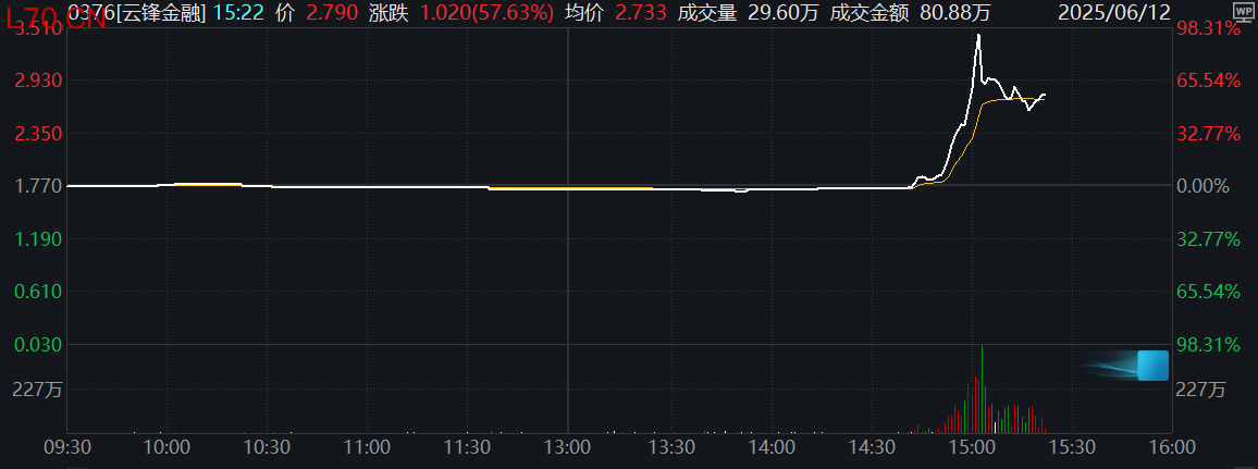 云锋金融盘中一度飙升98%股票配资平台开户是否支持手机