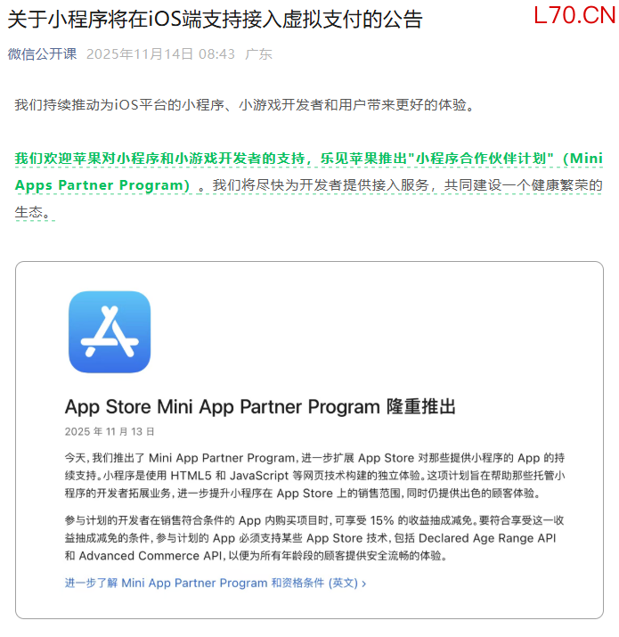 微信小程序官宣将在iOS端支持接入虚拟支付