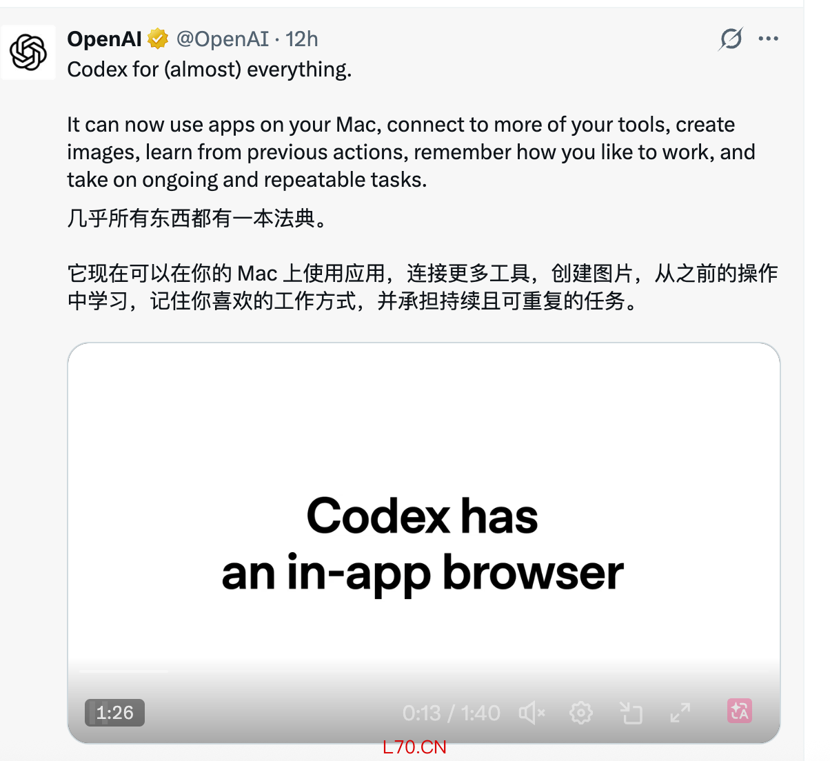 官方演示显示,Codex可以构建和调试井字棋游戏或创建汉堡店的视觉效果,每周为超过300万用户提供服务,其需求已远远超出编程范畴。此次升级首先在MacOS上推出,Windows版本即将推出。