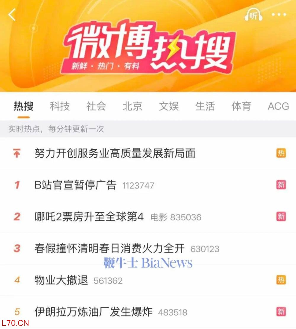 B站官宣暂停广告登上微博热搜第1