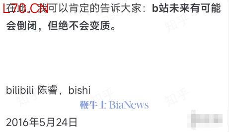 值得一提的是,2016年,哔哩哔哩董事长、首席执行官陈睿曾经发布公告称“B站未来有可能会倒闭,但绝不会变质”。