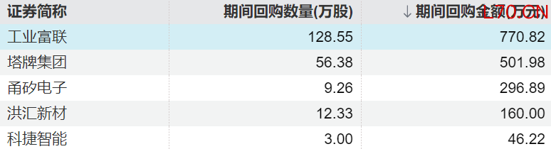 5家上市公司股票获回购配资证券开户是否靠谱,工业富联回购金额最高