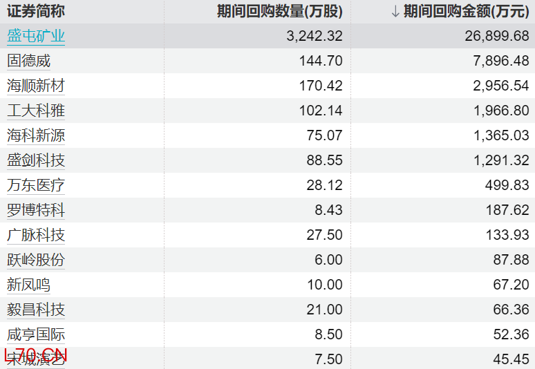 16家上市公司股票获回购,盛屯矿业回购金额最高