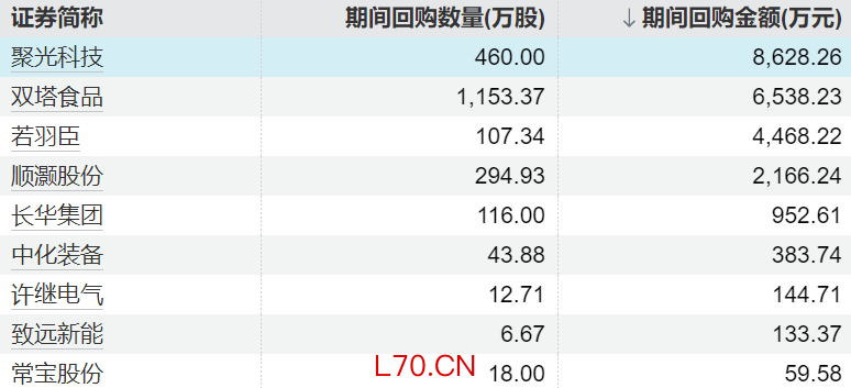 9家上市公司股票获回购,聚光科技回购金额最高