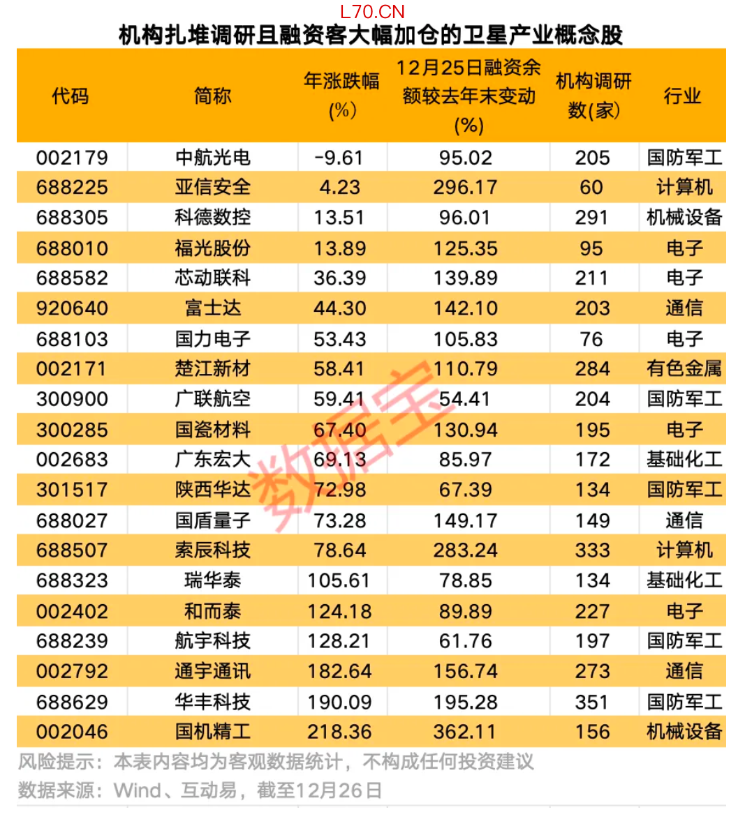 卫星产业链公司出炉 20只机构扎堆调研个股获融资客大幅加仓