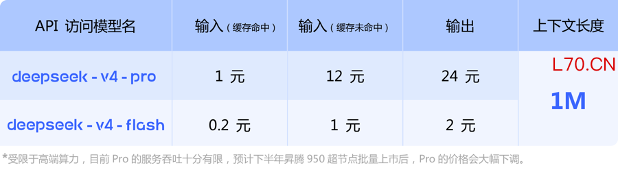 DeepSeek也在文档中表示,预计下半年昇腾950超节点批量上市并部署之后,V4-Pro版本的价格还会大幅度下调。